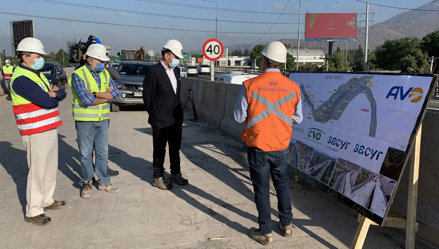 El ministro de Obras Públicas, Alfredo Moreno, visitó las obras de construcción del Viaducto El Salto con el objetivo de conocer e...