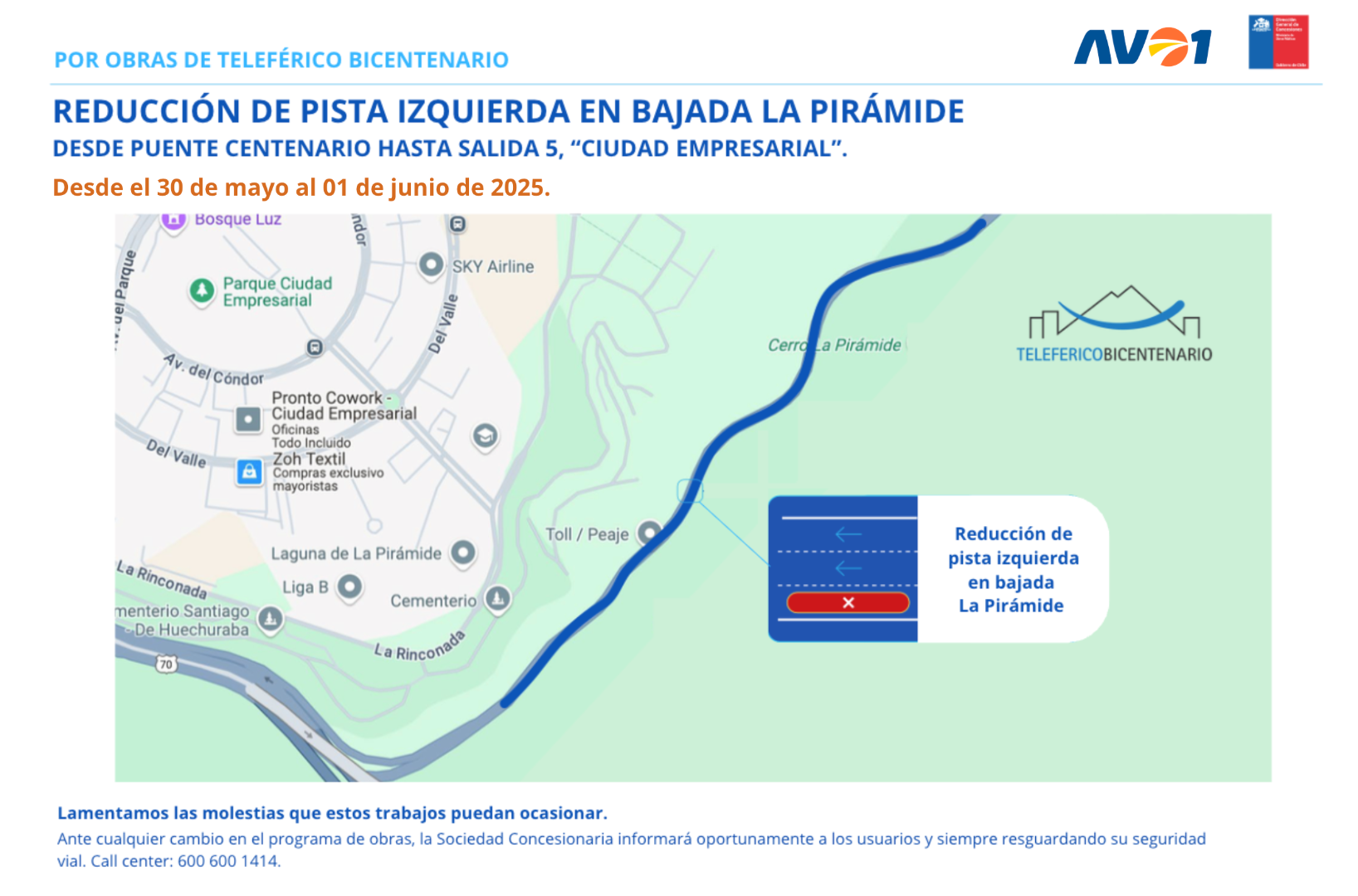 Reducción de pistas en bajada La Pirámide por trabajos de Teleférico Bicentenario